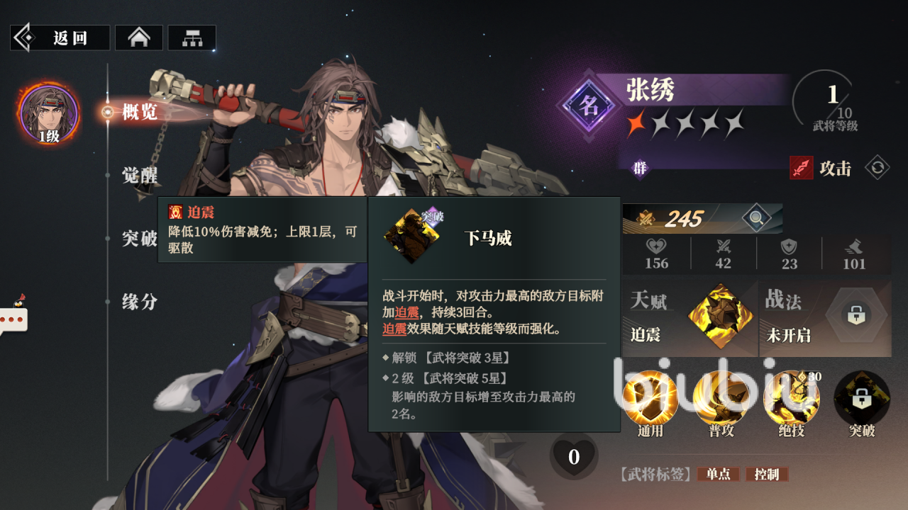 这也是攻击型的武将,但是他又区别于关平,虽然也比较擅长对任意一排的敌人打出亮眼的输出,重点是他具备一定的控制效果,在战斗开始时,能给敌方目标施加“破震”效果,形成有效的控制力度。
