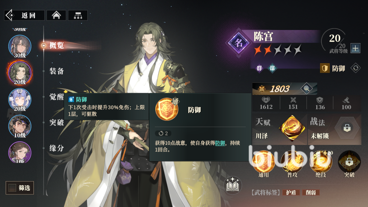 如果大家比较缺防御型角色,那就比较推荐该名将,拥有非常不错的护盾效果,同时也擅长打削弱,并且天赋能带来让自身回复生命的效果,在敌人拥有减益buff的情况下,可回复自身一定生命值;护盾能很好的抵挡对手的攻击,同时利用削弱能力让敌人的输出能力降低。