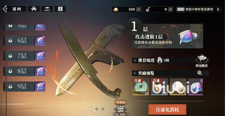 武将进阶:主要是在历练副本当中进行,不论是哪种职业在这个副本当中均有不同的9层挑战,通关之后可获得1-9层武将的进行材料,是进阶武将的主要渠道,通关后后续可扫荡直接获取。