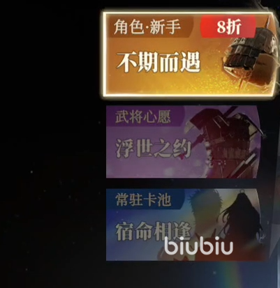 首先第一个卡池不期而遇是所谓的新人卡池。这个卡池里面进行招募的话可以获取到8折的一个优惠。这个卡池是有着一个新人保底机制,咱们在当前的卡池抽到一定次数必定会获取到神将,在获取到保底的2次神将后卡池会关闭,神将是随机的。这是一个新人的福利卡池。