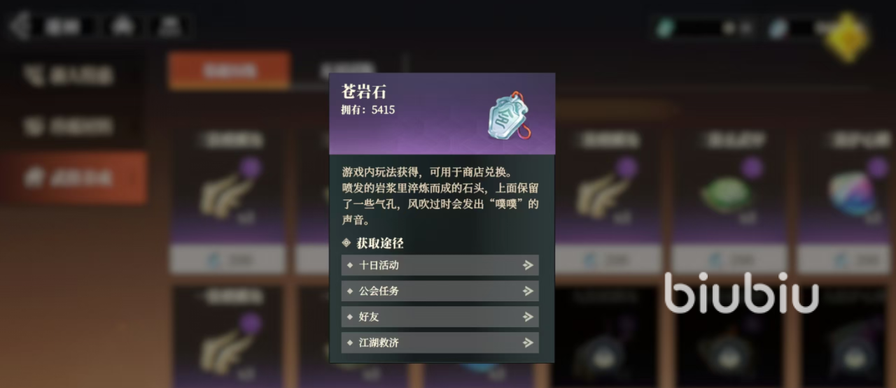 另外演武场主要产出除了苍岩石外,还有天机令、三山璧、三山钱、灵犀玉和天机令资源非常值得去游玩,最后除了这两种渠道外,玩家还可以通过十日活动、好友和江湖救济得到一定数量的苍岩石。