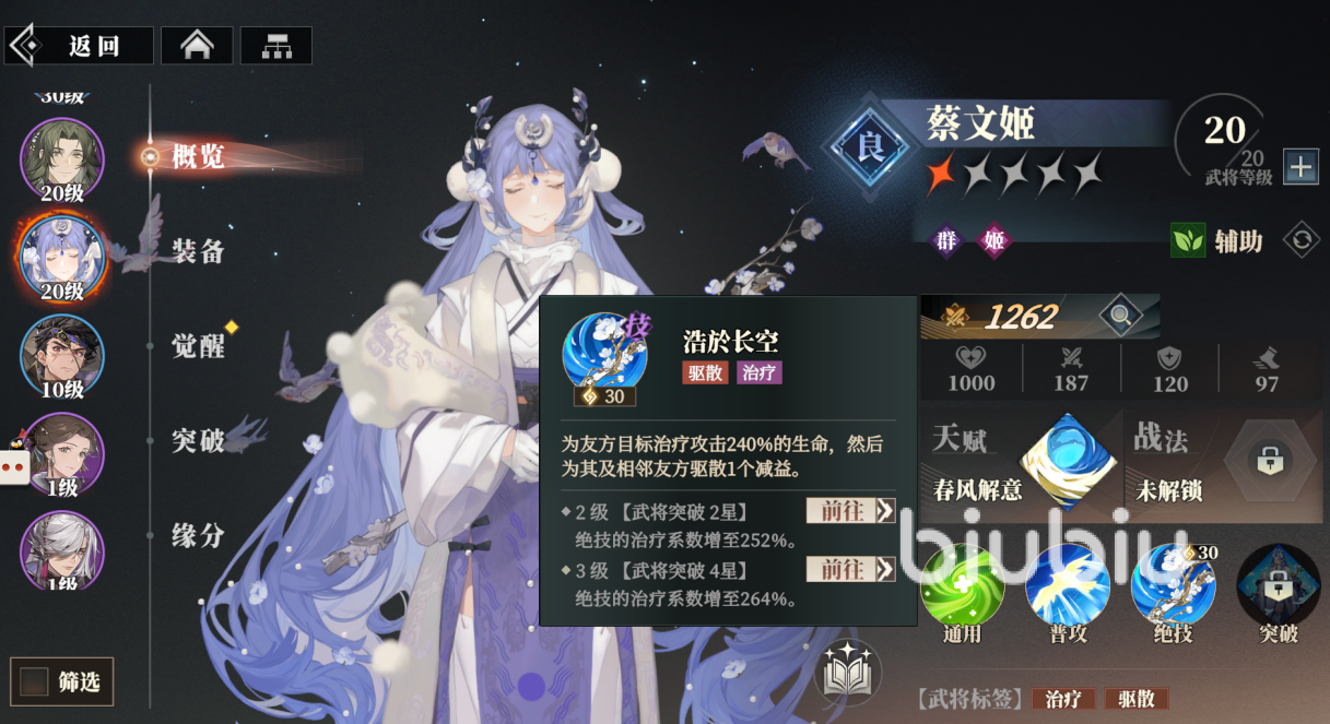 蔡文姬属于治疗,绝技能帮助一位队友治疗攻击240%生命,并且还会为其和相邻队友驱散掉1个减益,孙开朗可以作为前排使用,他的天赋能在生命比例首次降低到50%以下是,永久得到山岚提升30%物理免伤,绝技能对敌方目标进行3段攻击,每段形成38%输出值,驱散掉目标1个增益的同时治疗自身生命上限20%的生命;