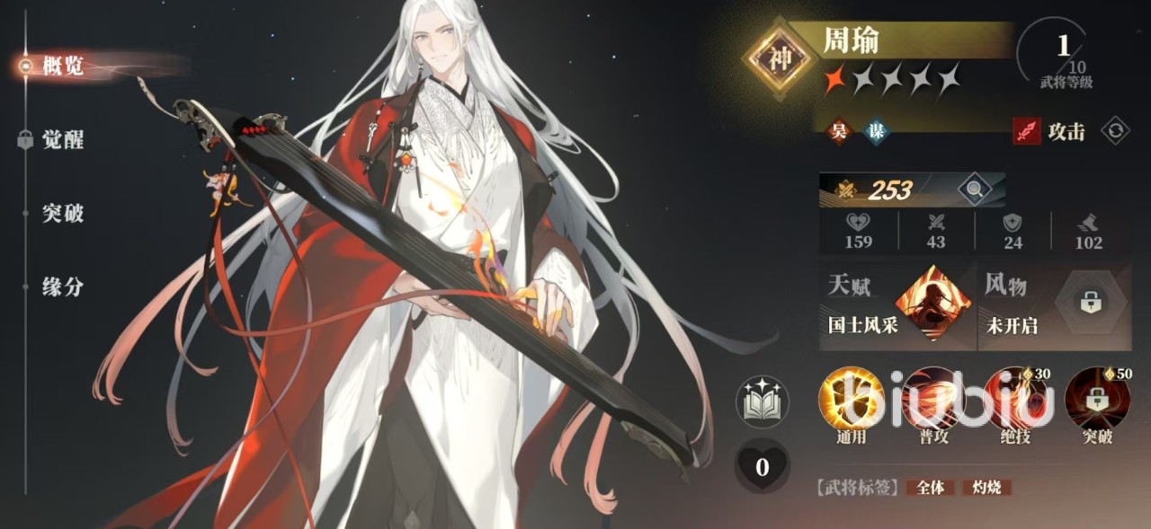 在目前的游戏中,比较出色的吴国武将有步练师,孙尚香,甘宁,周瑜等。先来看一下周瑜,周瑜是属于谋士类型,他的天赋国士风采,使友军全体造成的灼烧伤害提升30%,是走灼烧流中核心人物。他的普攻可以给敌方前排目标造成法术伤害并附加灼烧,绝技可以给敌方全体附加灼烧,敌方每带有一层灼烧效果,受到该伤害还有增伤。