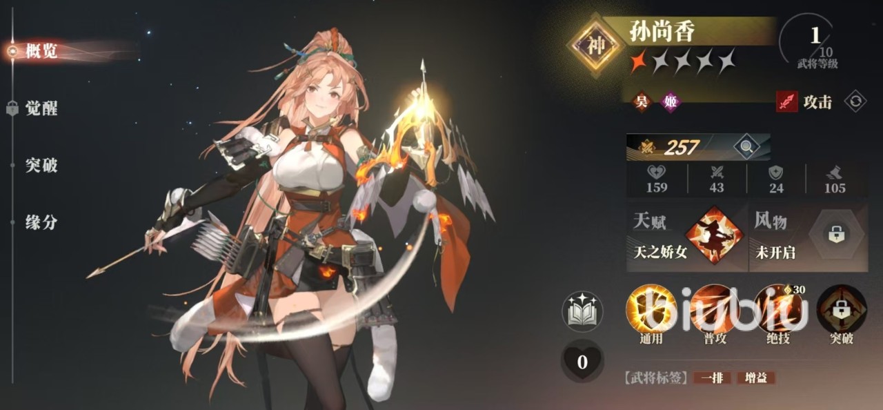 孙尚香天赋天之骄女,每次攻击目标之后都会在增伤,穿甲,狂暴,生命等随机增益属性中选择一种,优先选择还没有选中的增益,所以一般不会重叠。孙尚香绝技可以攻击敌方任意一排,如果自身带有增益状态比较多,还有额外增伤效果,并使下一次普攻连续攻击两次。