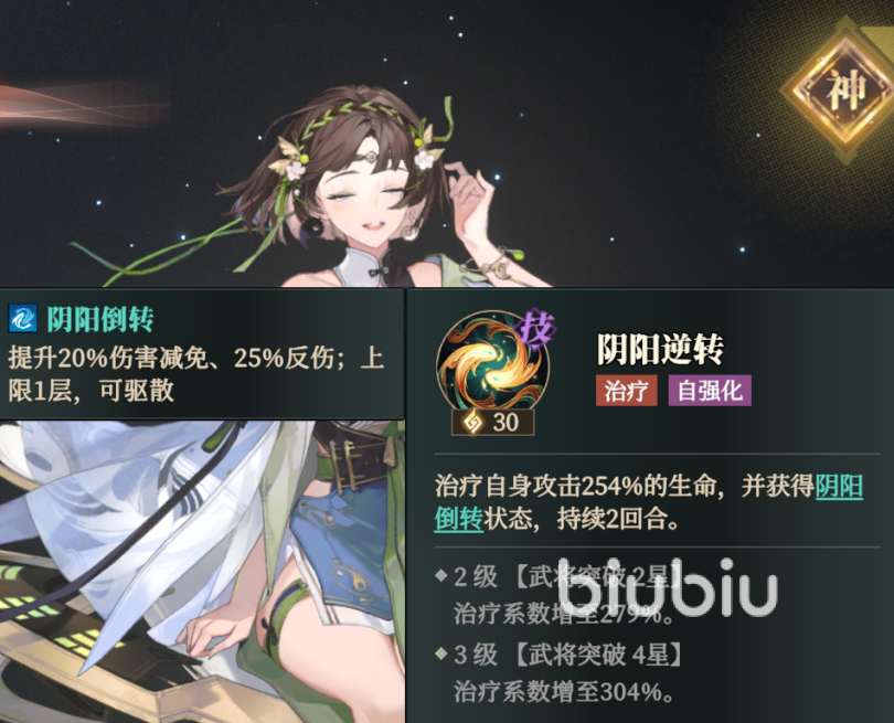诸葛果在突破之后可以学习到斗转星移这个能力。此能力可以为全体进行一次驱散,并且还能让自身和身后的同列的队友获取到阴阳逆转,持续2回合。能力在2级的时候将会减少1秒冷却。
