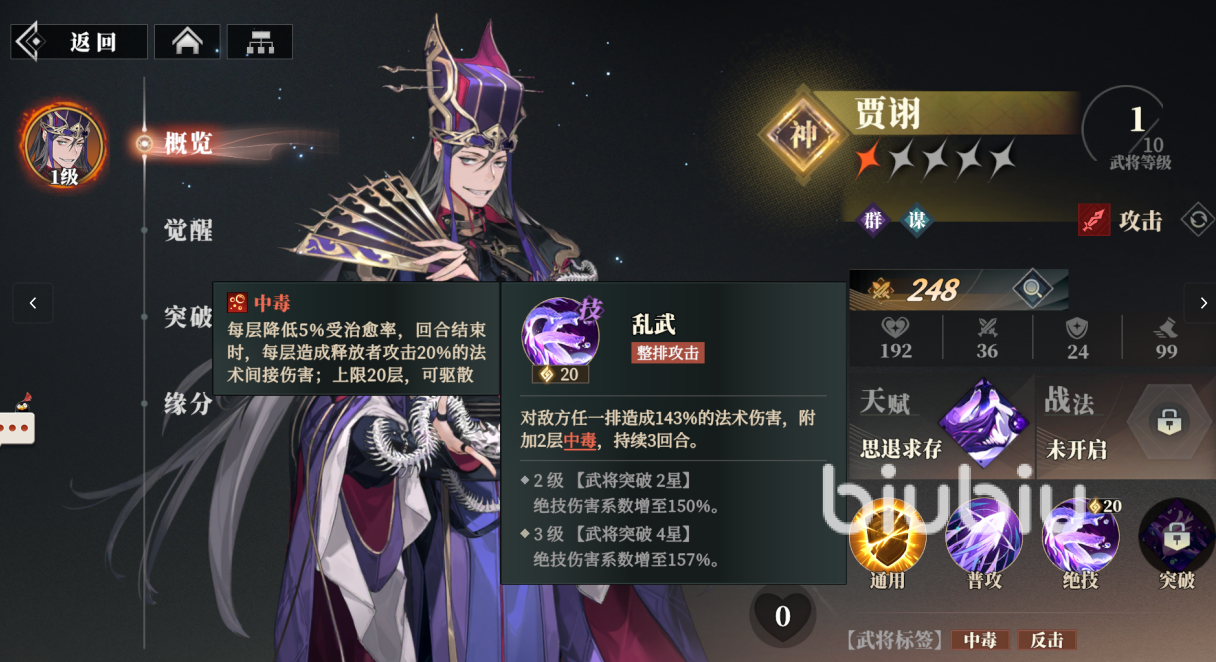三国志幻想大陆2枭之歌贾诩怎么样 三幻2贾诩技能强度解析