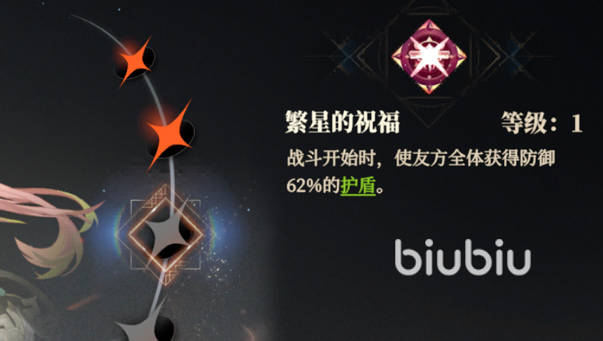 然后是她的绝技,可以在入战的时候就给全体己方提供护盾。除此之外星彩的天赋“战场飞星”可以在队友护盾耗尽的时候,给自身提升5%的行动条,让星彩可以更快行动,加快技能轮转。