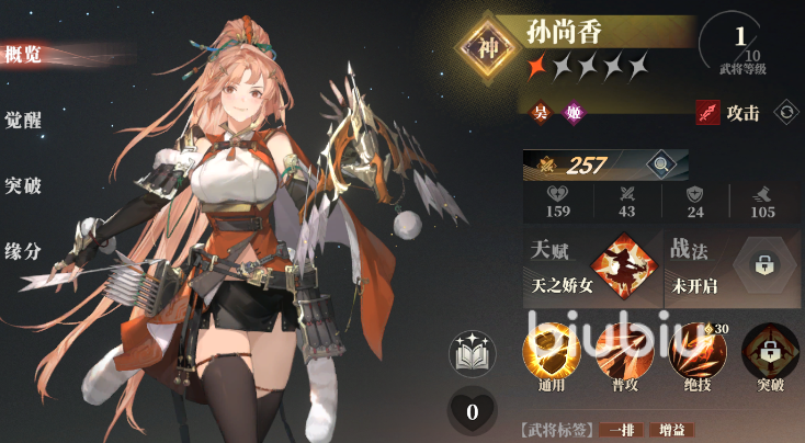 2025年03月17日 16:16 来源:魔抗近山中亥一1孙尚香是三幻2中吴国阵营的巾帼武将,属于攻击型武将,并且还是神品级的。那么三国志幻想大陆2枭之歌孙尚香怎么样呢?谈论一个武将的强度,不仅要看她的技能机制,还有得看数值的高低,以及是否有契合她的阵容,放在特定的阵容中有时候就能有亮眼表现。