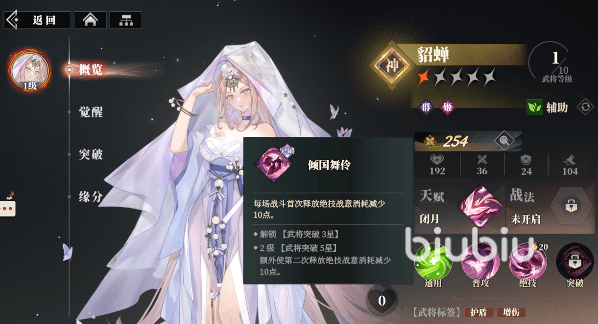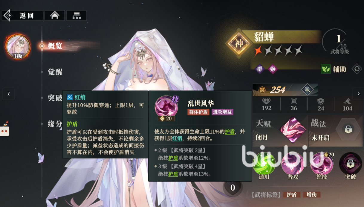 2025年03月17日 16:14 来源:禁魔止大钳蟹三国志幻想大陆2枭之歌貂蝉作为群雄阵营的神将角色,定位是辅助类,能为队友增加伤害带来护盾,很多玩家一眼就喜欢上了这个美丽的女角色,想要进一步了解她,那么下面就来介绍一下她的技能解析其强度,帮助大家快速了解她的能力作用,喜欢貂蝉的千万不要错过。
