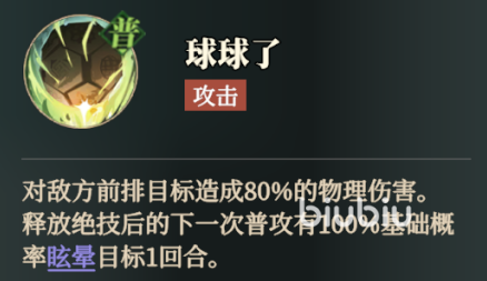 关银屏的普通攻击可以对敌方的前排目标造成80%的物理伤害。这个普通攻击在释放绝技之后会有100%的概率让下一次的普攻能眩晕。眩晕是让武将无法行动,如果在咏唱的话可以直接打断,上限1层,可以驱散。