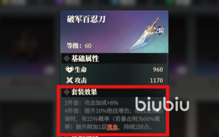 那么曹操的定位一看就是个主c角色,所以武器方面选择破军,破军的基础属性不错,而且被动能力可以提供攻击力以及绝技的额外属性,并附加流血效果,使得曹操在大招形态下能打出更加恐怖的伤害。