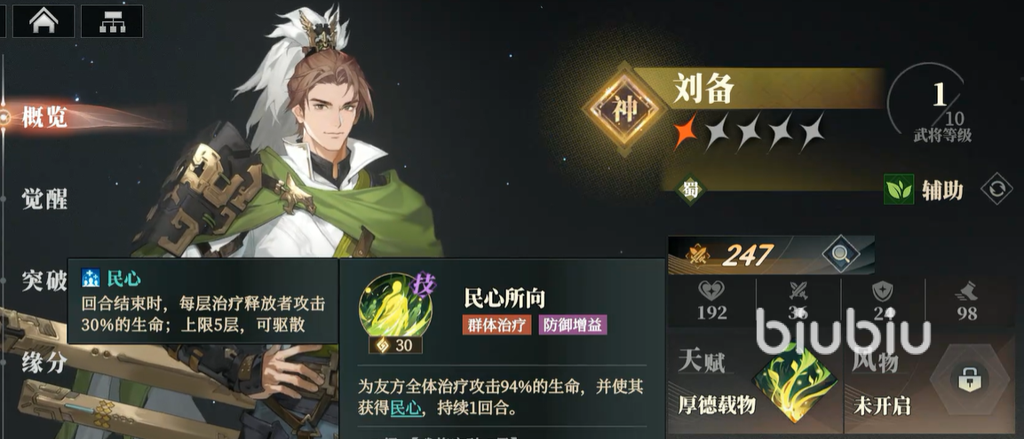 然后就是张飞和刘备,这两个角色的定位是辅助定位,张飞能提供百分之10的护盾,这样我方的生存能力能大幅提升,而刘备的作用就是群体治疗,而且每回合结束再次回血,使得刘备可以为全体恢复巨额的血量,提高了整体容错率。