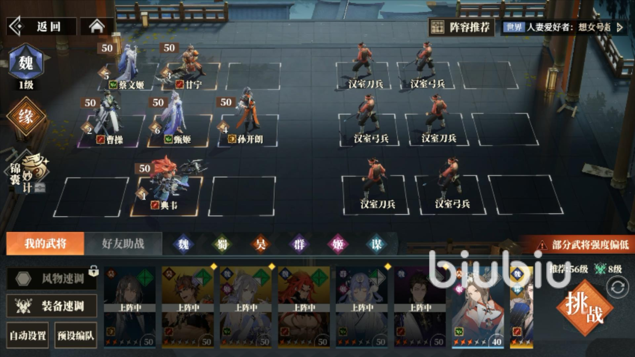而队伍内的出手顺序基本上就是根据移动速度依次往下排,速度最慢的人便是最后出手,如果说两方阵容都没有可以提供加速的英雄,那么就是所有武将比拼速度,根据速度的前后顺序,敌方双方英雄可以依次交手。