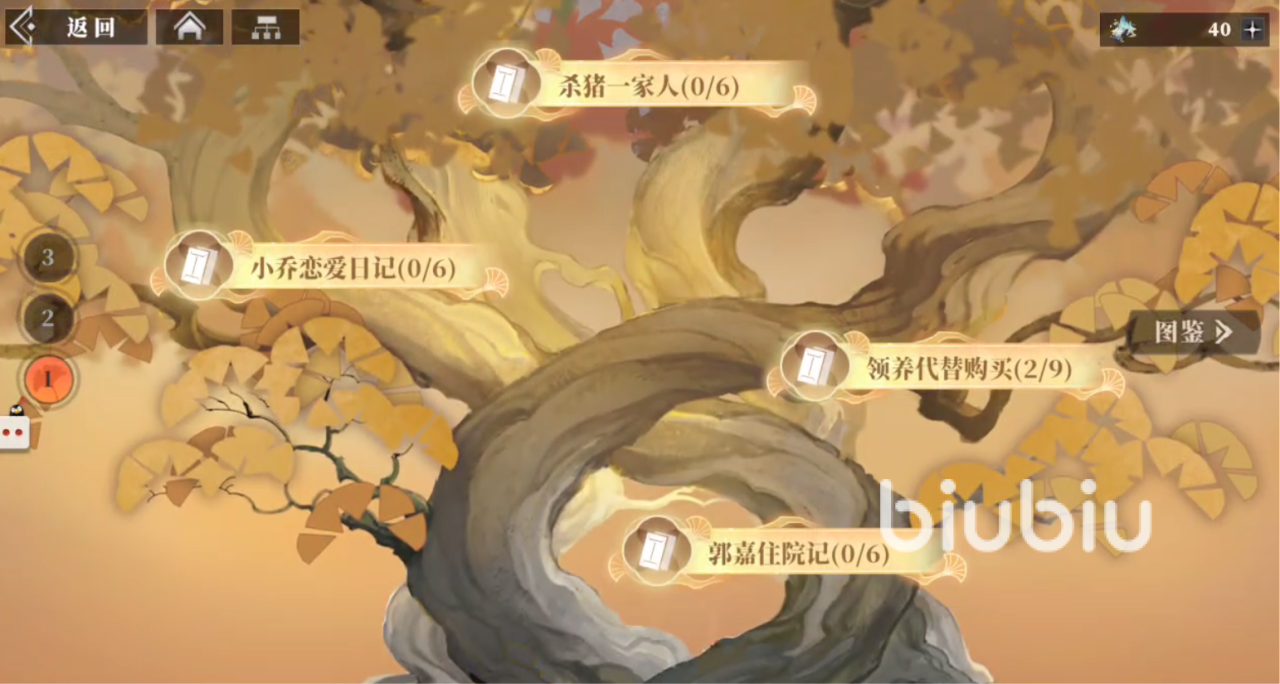 想要找到三千树的话,成功解锁之后就可以点击游戏主页左下角的三山里,进去之后从左数到右,第三个就是三千树了。所谓的三千树其实就是一种故事玩法,在可以在这里看到各种各样的剧情故事,点进去之后就可以看到某个角色的故事任务了。