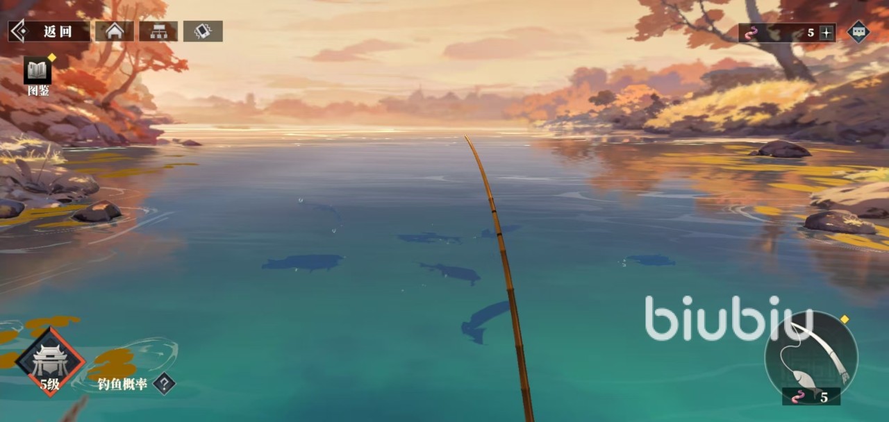 首先大家在游戏主页面中点击三山里,在里面可以看到有很多不同的活动,垂钓就是其中之一。点击进入垂钓之后,就可以进入到当前的钓鱼页面。这里面钓鱼不需要进行额外操作,只需要有足够的鱼饵,然后直接点击屏幕右下角的钓杆图标,就可以自动下杆了。鱼上钩之后也不需要进行额外操作,会自动将鱼竿收上来,然后获得本次的收获。每次钓鱼可以一次性投入5个鱼饵,然后获得5条鱼。每钓到新鱼之后,就会在图鉴中激活,激活之后能获得一次货币奖励。