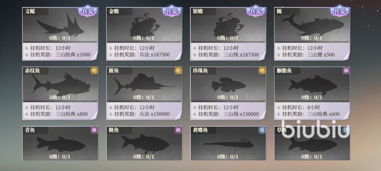 在枭窝窝中,可以将鱼喂给枭窝窝吃,然后获得对应的奖励,每个鱼可以获得哪些奖励,大家可以在垂钓功能的图鉴中查看到。例如传说品质的金蟾,可以获得挂机时长12小时,以187500兵法的挂机奖励。最低品质的黄甲鱼。只能获得挂机时长一小时,18750的三山钱挂机奖励等。钓鱼所需要的鱼饵除了自然恢复之外,可以通过三山币购买的方式额外获得。