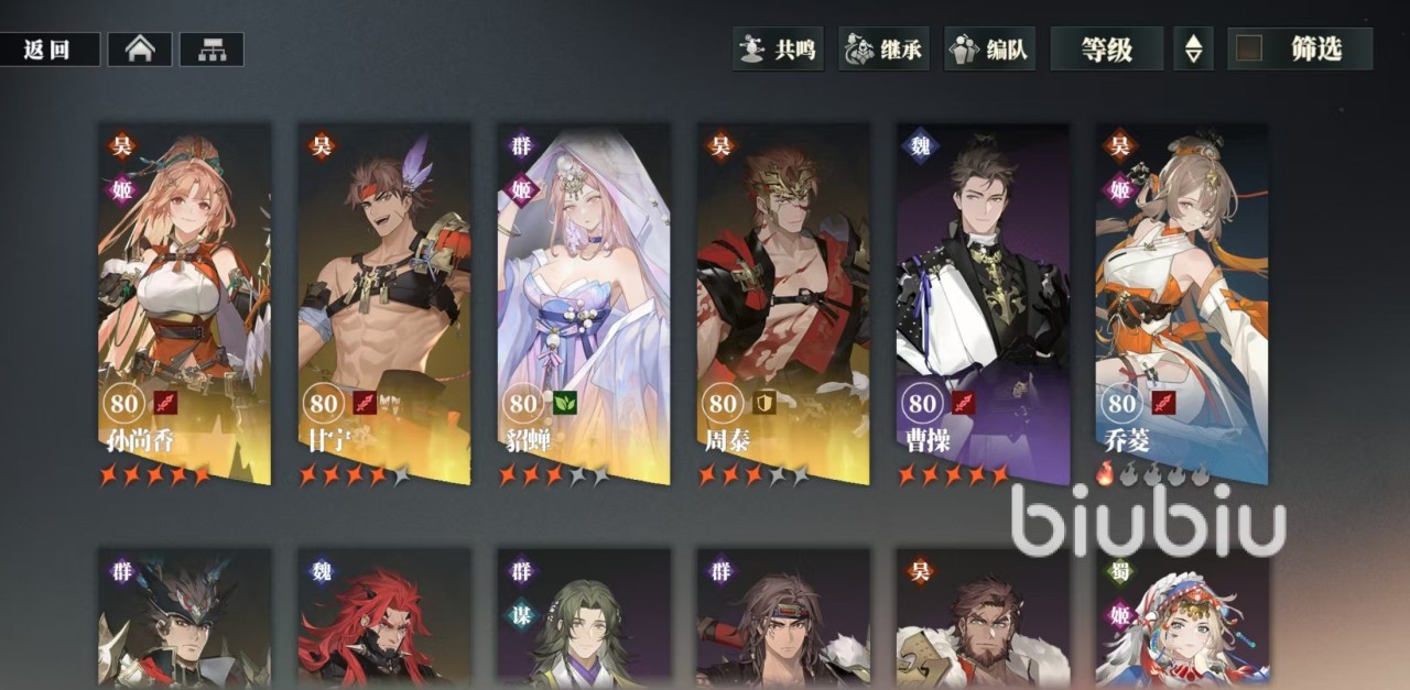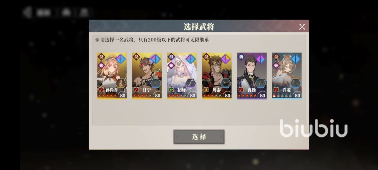 但是利用继承也是无法实现武将星级的转换,这一点大家要清楚,还是要通过每个武将获得魂石的方式才能够提升星级。继承这项功能一般是用于更换队伍中的主力,例如有了更合适的武将人选后,就可以将之前培养的直接继承过去。