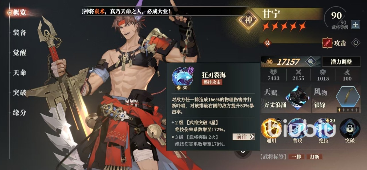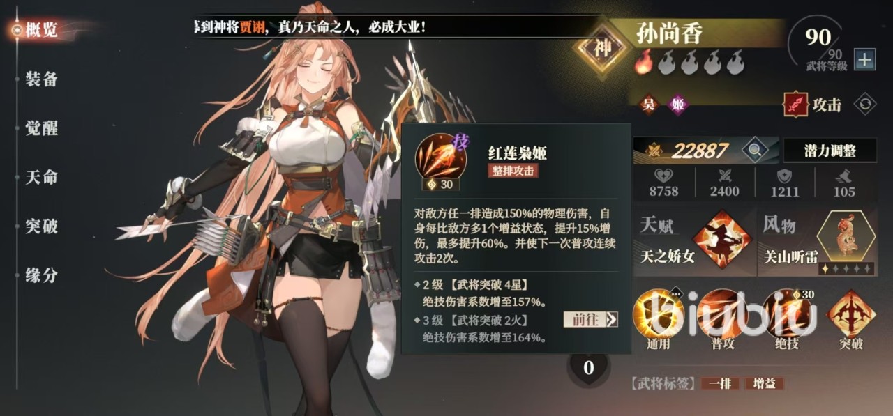 如果孙尚香和甘宁都使出自身的绝技,那么一整排敌人有可能直接被秒掉,孙权带来的战意消耗减少等增益,可以大幅度加快这二人的输出节奏。另外两名角色当然少不了治疗和单体伤害,单体伤害方面曹操就已经完全够用,不需要再使用其他的武将。治疗可以选择步练师师来给团队加血,如果没有步练师,貂蝉或者是蔡文姬等也都非常适合。