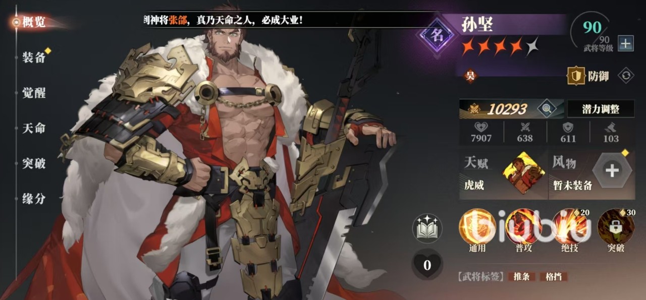 接下来推荐的是孙坚和邹翊。孙坚是属于肉盾类型,它能够利用自身绝技对敌方任意一列造成物理伤害,并击退对方20%行动条,附加威慑效果,使对方造成的伤害降低。孙坚天赋虎威,当有方受到带有威慑的敌方攻击时,能提升额外格挡率。任意友方格挡时,自身都能获得5%生命上限的恢复。孙坚能够有效地将敌方进度条击退,这样可以限制对方的节奏,自身在硬度方面也比较出色。推荐邹翊,是因为这个武将容易被人所忽视,但是绝技在单体输出方面比较出色,自身天赋使得绝技还能够为自身添加驭雕效果,并驱散目标身上的增益。