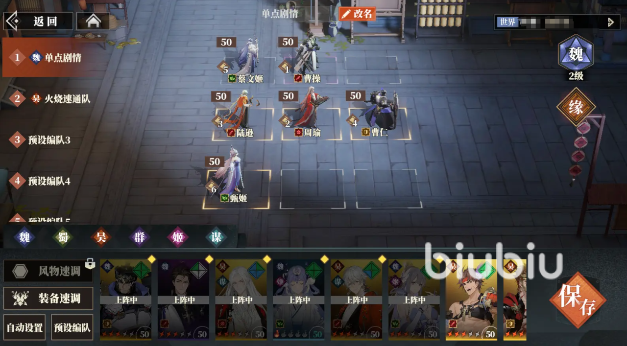 后排用刘备、曹操和袁绍,刘备主要负责回血和回怒,能保证队伍持续输出不缺怒气;曹操技能有沉默效果还能打出爆发伤害,是个控制兼输出的多面手;袁绍是阵容的关键,不但触发满缘分还加全队增益,自身也不容易被秒掉。三人组合在一起,输出、控制、回复都有了,后排也变得很稳。
