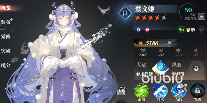必养的辅助武将,特点是高倍率的单奶,同时可以驱散队友及其相邻目标的一个减益效果,突破技则能是普攻后驱散目标1个增益,绝技治疗的同时还能驱散1个控制。天赋还能在释放绝技的时候为目标及其相邻单位的提供伤害减免。功能性很强,不少敌人是有强增益的,必须得驱散掉才能过,不然很容易团灭,因此蔡文姬的登场机会还是很多的。