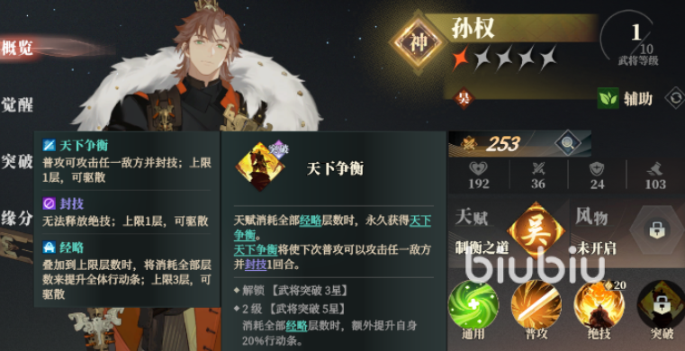辅助方面,推荐孙权与步练师的组合。孙权的大招可以为指定友军提升行动条并降低30点能耗,是提升团队节奏的重要手段。他的天赋2能降低己方推进行动条所需的经略层数;突破技“天下争霸”则可消耗所有经略层数来封印敌方技能,回合制中能有效打断敌方关键行动,是极具战略意义的控制工具。而后者的话作为全能奶妈,既能回血又能补充部分辅助功能,是非常契合火烧队的补位选手。