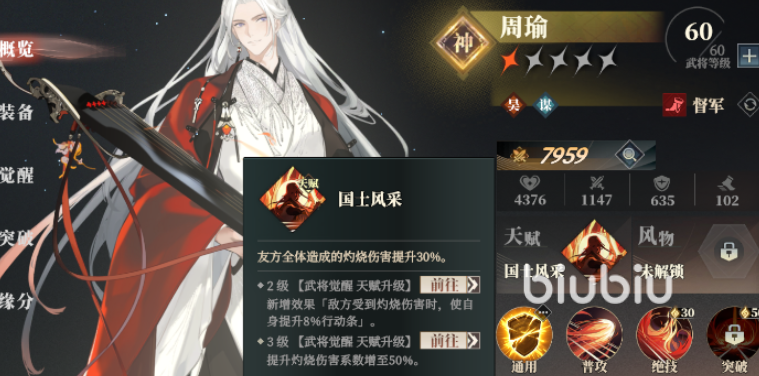 阵容核心是周瑜与陆逊。周瑜在天赋3时可提升全队灼烧伤害50%,属于机制关键。陆逊则在3星时解锁突破技,每次行动结束后为敌方全体追加1层灼烧;觉醒天赋3还能使绝技所复制的灼烧效果延长至2回合,有效增强群体持续输出能力。