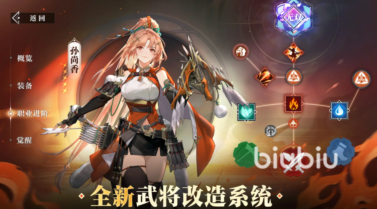 游戏中在拥有那么多特色武将的同时,还计入了全新的武将改造系统,每一个武将都会拥有多方向的转职,让大家可以自由决定手下每一个角色的发展方向,玩家们可以尽情发挥自己的想象力,为喜欢的武将打造专属的战斗流派。