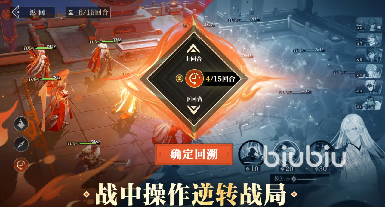 游戏在传统回合制的战斗上加入了诸多创新,关卡里不仅会有砸下来的屏风、灼烧场地等不同机关,还加了控制行动条以及回溯等全新机制,这使得玩家不仅要考虑好阵容和技能释放顺序,还要留意关卡的不同和机制的运用,每一位玩家的策略和决断都能在一场场战斗中得到发挥。