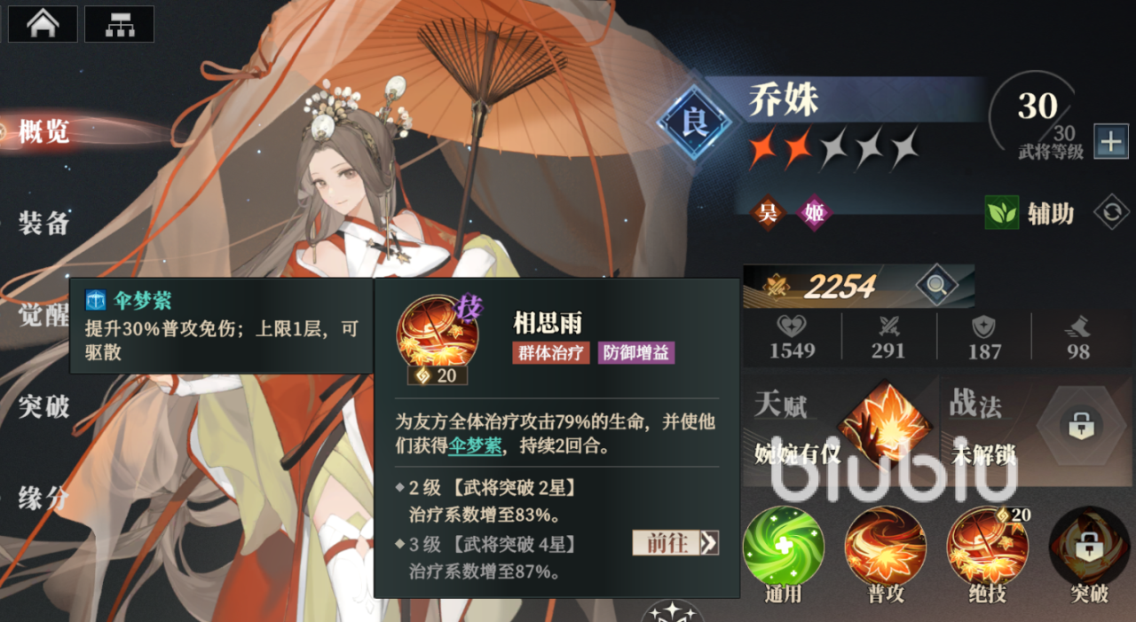 而且蹇硕的后排有死诏,并且是驱散无法消除的,只能通过回血来消除,因此就会导致己方队伍的血线很低,容易被对面的张春华的一套技能加上死士的自爆带走。这时候可以考虑用【乔姝】,她有一个独特的机制,天赋和绝技可以让队友的普攻回血。