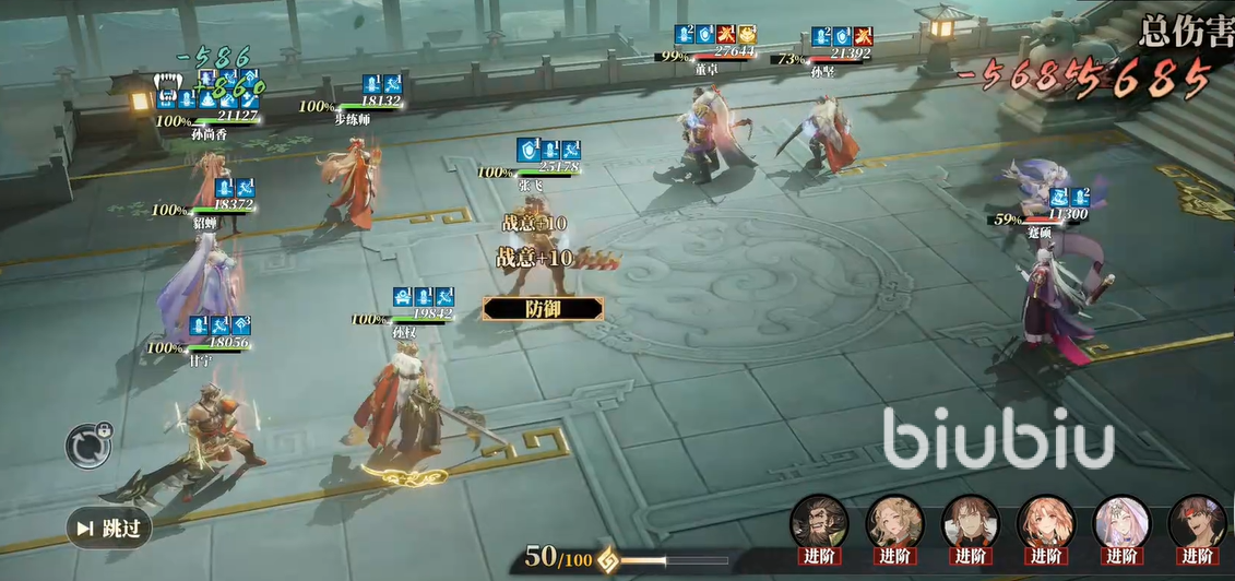 最后就是三个辅助角色,孙权,貂蝉以及步练师,这三个角色直接提高全队的生存能力以及开图能力,其中孙权的技能可以提高我方的全体速度,这样占据更多的先手机会,可以提前释放技能打掉对面的状态。