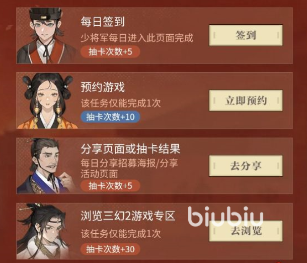 活动期间,完成每日签到、预约游戏、分享页面或者抽卡结果、浏览三幻2的专区都可以获得一定抽卡次数。然后就可以在这个活动页面抽卡,活动卡池的概率还是挺高的,可以轻松抽卡橙色武将。