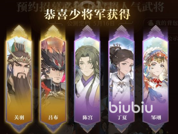 玩家可以在背包中查看自己抽到了哪些武将,等到游戏公测并且玩家等级达到3级之后,再返回这个页面,可以选择1位神将+4位名将或者良将带入到玩家账号里。