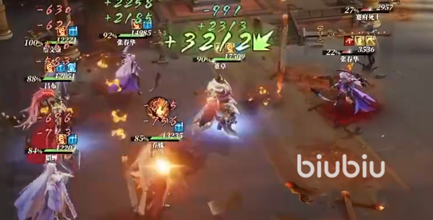 每回合都会有火团从屋顶坠落造成额外伤害,而蹇硕在后排召唤的“死诏”标记更是常规手段无法清除,只能通过回复生命来解除,没有群抬的话己方血线很快就残了,再加上张春华的技能高爆发和死士的自爆机制,很容易造成团灭。