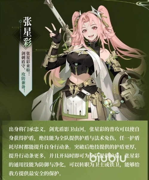 如果一个大乔还不能撑起大家的容错,那么张星彩就弥补了这一点,拥有群盾和法伤减免的能力,群盾加群奶的组合,让小伙伴们的队伍可以多次起死回生。
