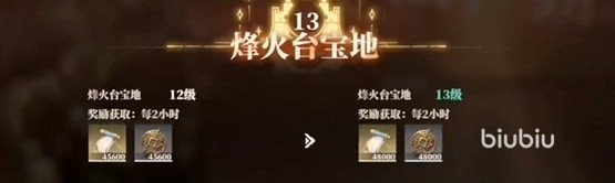 然后大家记得通过兵械库去做爬塔任务,每层通关都可以领取一些升级材料,以及掉装备的钩子。此外,宝地还会额外的产出挂机奖励,大家的兵械层数越高,那么钩子的产出速度是越快的。