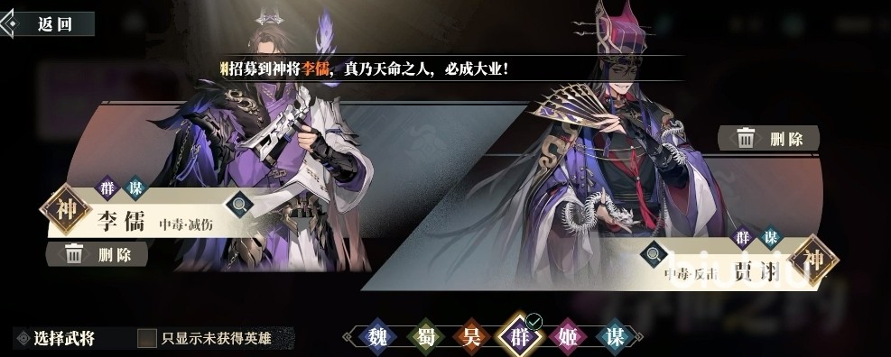 而毒队是以毒伤和减益为核心,通过贾诩、李儒施加中毒效果,配合董卓火属性伤害形成双压制,贾诩主要的作用是去负责反击以及打持续输出的,李儒能削弱敌方增益,同时可很好的控制节奏,董卓驱散以及真实伤害能力不错。