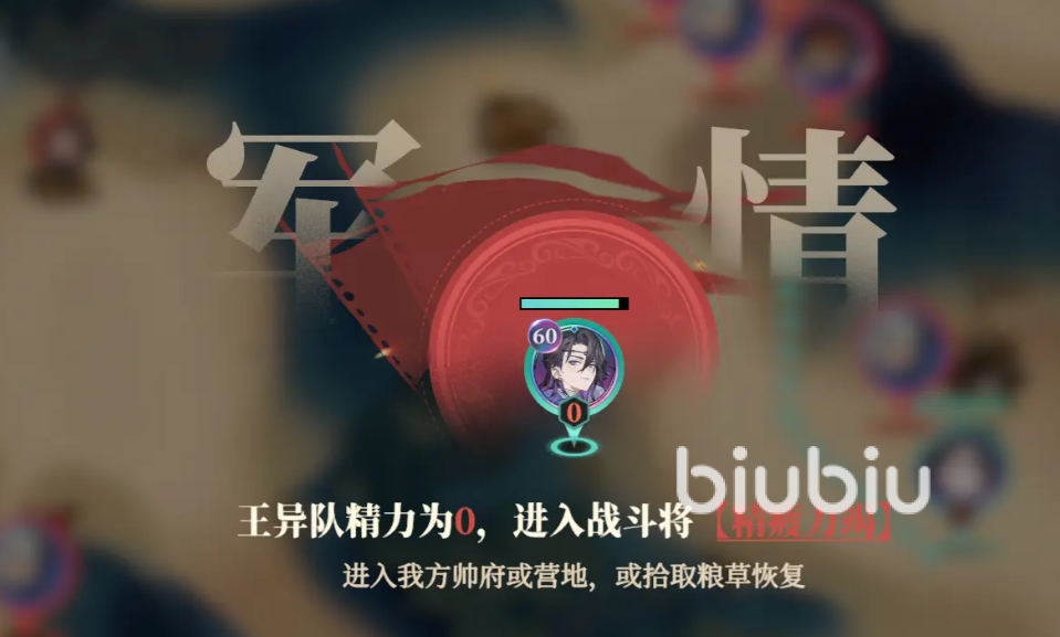 此外战役内的战斗采用血量继承机制,每个队伍都具有精力值,每次在野外交战会减少1点,如果精力为0,武将属性将会大幅度下降,战役地图内包含了旗帜、粮草等多种不同效果的交互物,合理拾取规划能给整个队伍带来增幅。