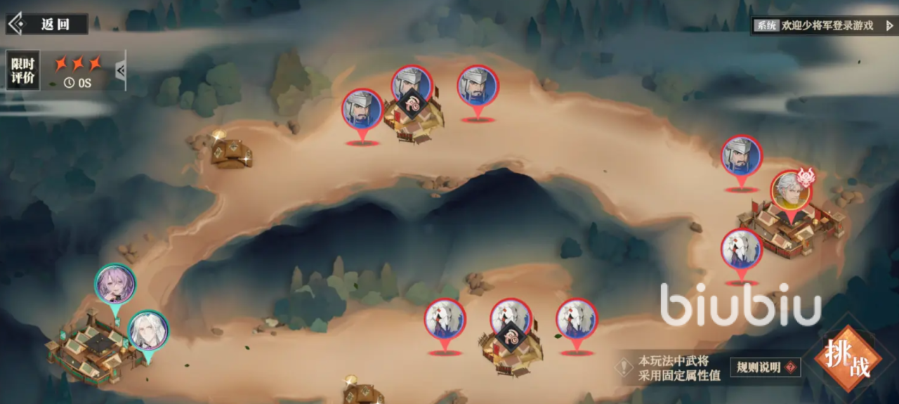 若我方帅府被攻占,或者是全部队伍失败会被挑战失败,该玩法保留了回溯机制,大家运用该功能从失败状态中重返战场,战斗除了双方的帅府外,还有旗帜、军营都多种中立建筑,以及旗帜、粮草都不同战场效果的资源,大家遇到险阻时可以合理尝试利用建筑、资源或获取增益,为全队带来加成,最后将战场关卡通关后,大家能拿到三山璧等奖励。