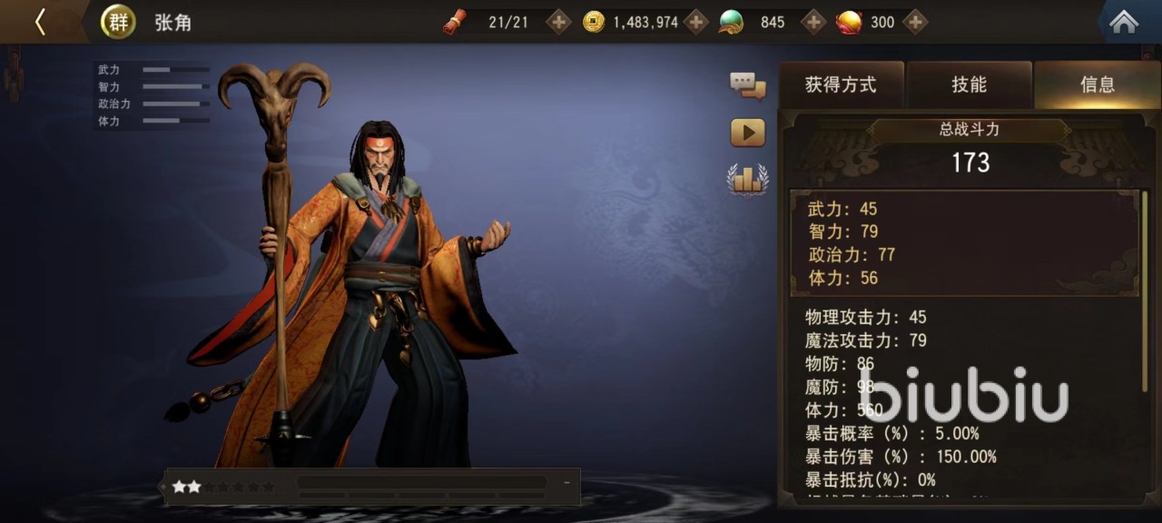2023年03月13日 15:46 来源:破军立小海狮张角在三国历史中的地位非常独特,可以说直接开启了一个新时代,直接将历史从汉朝带到了三国,在三国诛将录中也设计了这样一名武将,来看下三国诛将录张角好用吗。虽然初始星级并不高,但是并不意味着不能选择。毕竟游戏中没有出现任何废将,只要选择妥当都能发挥出自身优势。而且后续还有系列养成强化,完全可以升星,具体是否好用,重点在技能上。