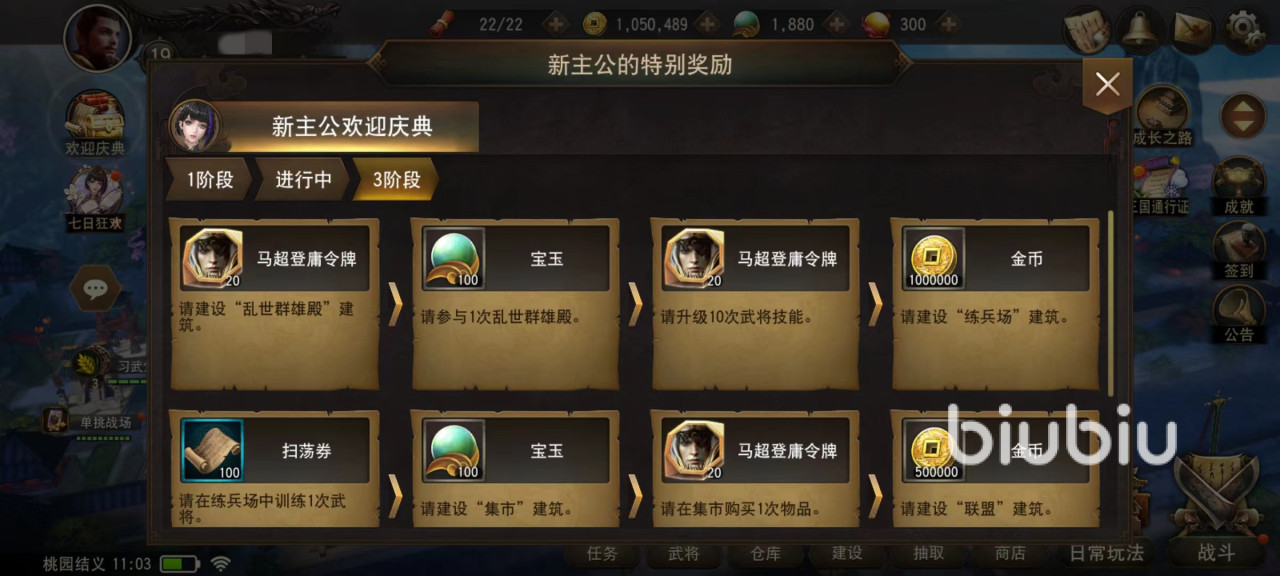 最后每月奖励也同样如此,并且这些都不需要刻意去完成,跟着主线或者是获取其他道具时候就能一定得到。后续还有一些指定活动,例如乱世群雄殿,这是项难度比较高的活动,需要在主城中建立关键建筑之后才会开启。每完成一次奖励都会有金币赠送,主要参加形式为占领不同城池。