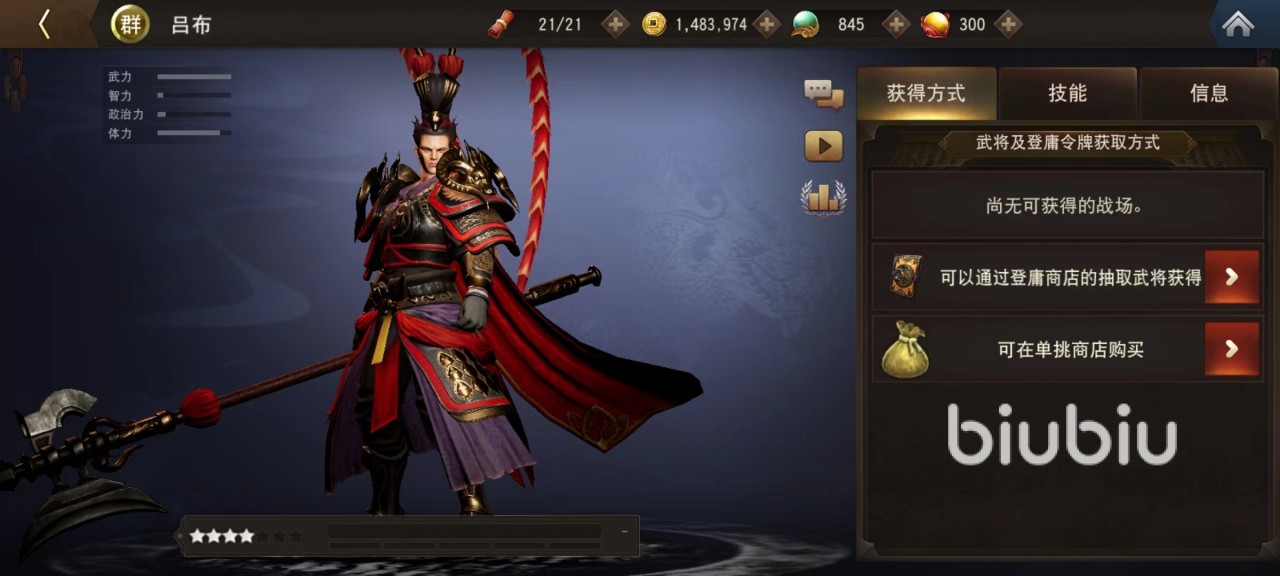 目前该武将除了可以在日常武将卡池中抽取道之外,还开放了限时活动,将这样几率比较低的拿出来特意开放。如果对这些有兴趣,可以直接去限时活动抽取,这样几率更高。首先是该武将自身属性绝对值得培养,武力值和体力值都非常出色。无论是主动还是被动都很有效果,而且描述很简单,不需要仔细研究就能熟练使用。