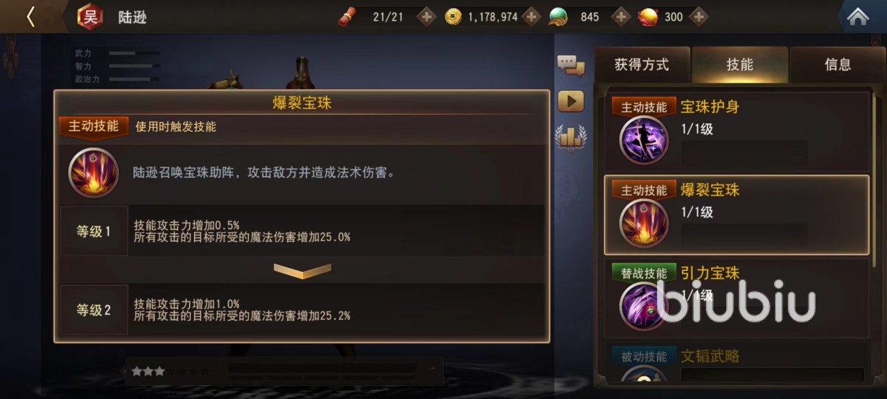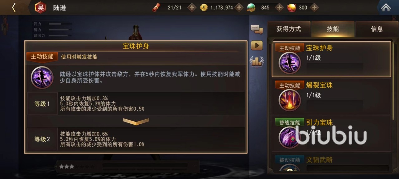很多玩家认为陆逊初始只有三星肯定不能承担起核心重任,其实这样认识不正确,不论初始星级如何,只要后期养成到位都可以在属性上做到一致,最关键依然看技能效果,这是无可改变类型。陆逊所拥有两个主动技能分别是伤害和治疗效果,第1个宝珠护身,在5秒钟之内为我方目标恢复大量体力,并且在技能释放时候还能减少自身受到伤害。第2个爆裂宝珠,召唤出宝珠攻击敌方,造成大量法术输出,这样综合起来既有团队辅助又有伤害。