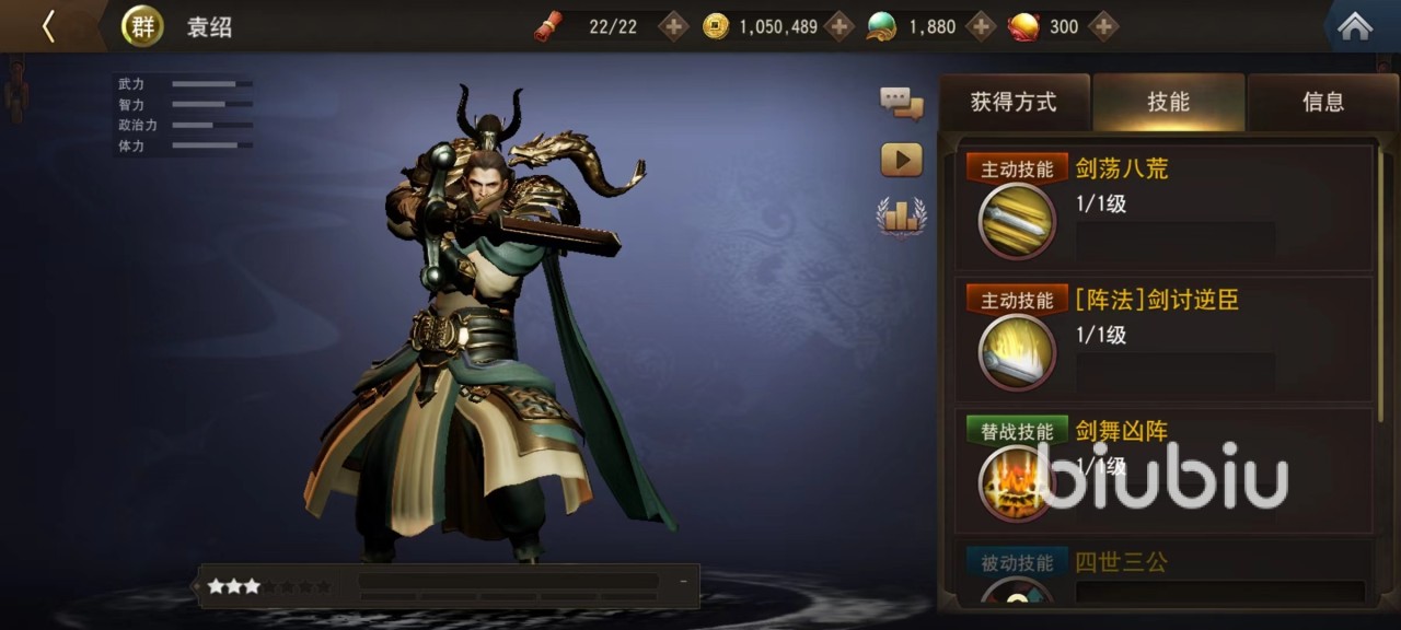 如果之前没有使用过袁绍,居然需要了解技能效果,第1个主动技能是使用手中常见向前方挥舞,进行多次打击。不仅特效好看,而且拥有很强节奏感,第2个将自身怒火全部汇集到宝剑上,发射出剑气可以冲破前方敌人阵型,提高攻击力。这两个主动技能自然有顺序,需要先将攻击力提升上去之后打破阵型,而后再用另外一个持续收割,总体伤害量很可观。袁绍替补出战可以造成范围伤害,外加额外眩晕效果。