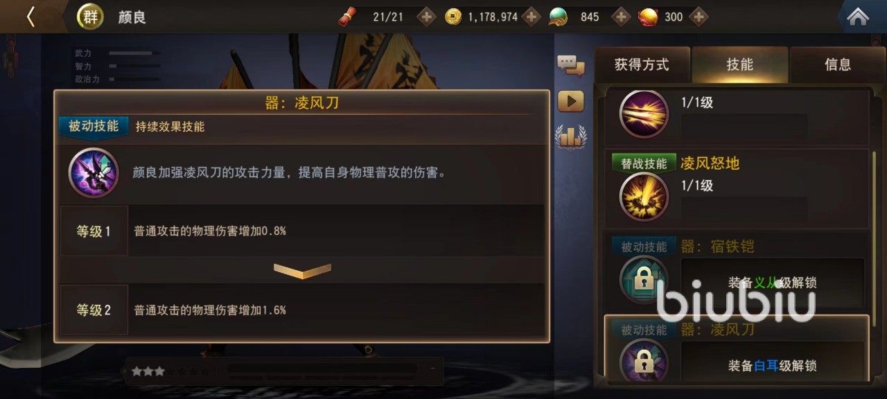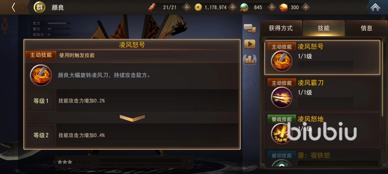 两个被动分别提高自身体力和普攻伤害,搭配起来使得颜良不需要过多依赖技能,单单依靠普攻就能打出非常可观伤害。推荐直接出战,而不是替战登场,因为替战技能虽然伤害也不低,但是仅仅是很普通范围输出,没有其他附加效果。队友搭配方面以群雄为主,和文丑、袁绍一起出战,获得物理伤害以及体力加成,在所有三人组合中也是非常可观的提升。也可以与貂蝉、董卓一起上阵,同样是利用大刀攻击,在技巧方面非常相似,而且董卓还能吸收输出,为颜良创造机会。