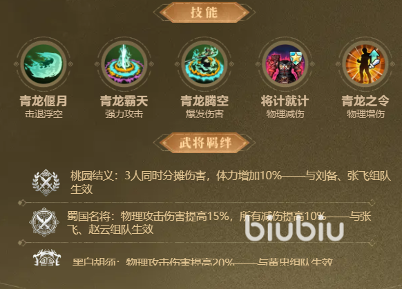 而刘备张飞也不落下风,前者不仅获得的方式十分简单,主线就送,还可以使用技能“士气大振”来提升我方的物理伤害,并且其余技能都是cd很短的单体控制技能,完美弥补了关羽cd长的缺点,可以说是一个专业的“关羽拐”,而后者则是一个物理输出为主的暴击英雄,十分贴合刘备的buff技能,刘备上完buff后,由关羽将敌人聚拢并和张飞一起输出,一套combo下来是没有任何敌人能够反击的,除非对方也有不吃控制的关羽。最为关键的是,这三人同时出阵的话,还可以触发“桃园结义”羁绊,三个人可以分摊伤害,大幅提升队伍的容错率。