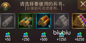 首先就是等级了,等级是一个武将的基础,也是最容易提升的方式,玩家们可以在武将界面的右上角看到升级的字样,点击之后,就可以进行升级了,升级主要耗费的道具为“兵书”,兵书分为从一到五五个等级,主要产出则是在日常副本中,在资源紧张的前期各位小伙伴们一定要注意武将升级所需要的经验值数量,不要在快升满级的时候使用高等级的兵书,不然的话很容易造成经验溢出的情况。当然除了刷每日副本,想追赶进度的玩家也可以使用宝石购买兵书,最便宜的一档只需要50元宝,十分实惠。
