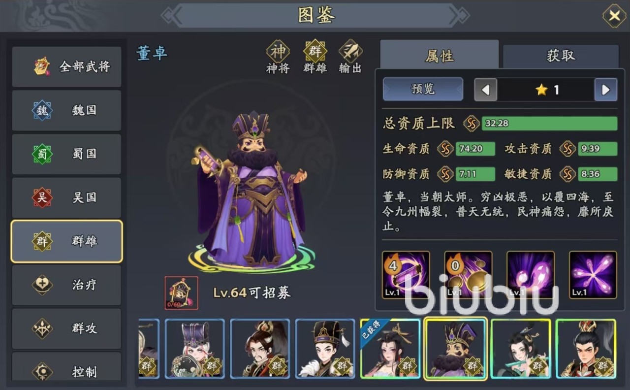 有了袁绍在前面吸收伤害和进行嘲讽,其他队友就可以放心输出了,在阵容搭配方面,小编选择的是华雄,蔡文姬,陈宫、董卓。华雄的定位虽然是辅助,但是伤害也很不错,他的必杀技能可以对敌方单个目标造成伤害,按照目标生命值上限百分比来附加输出,并将目标的增益状态偷取过来。董卓是很好用的输出神将,必杀技能带来出色的单体伤害,并为自身添加暴击状态,在此状态下伤害吸血都有提升,还能无视反震,有额外的命中和暴击效果加成。