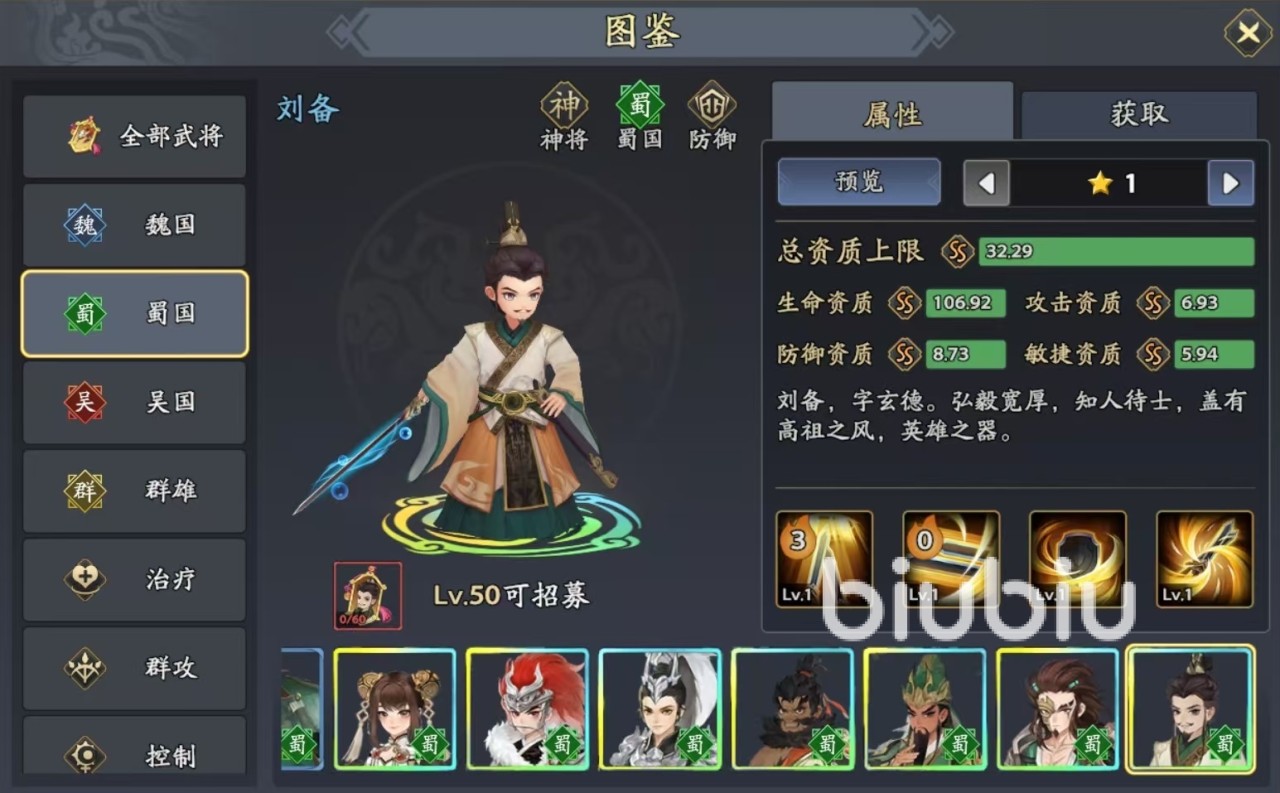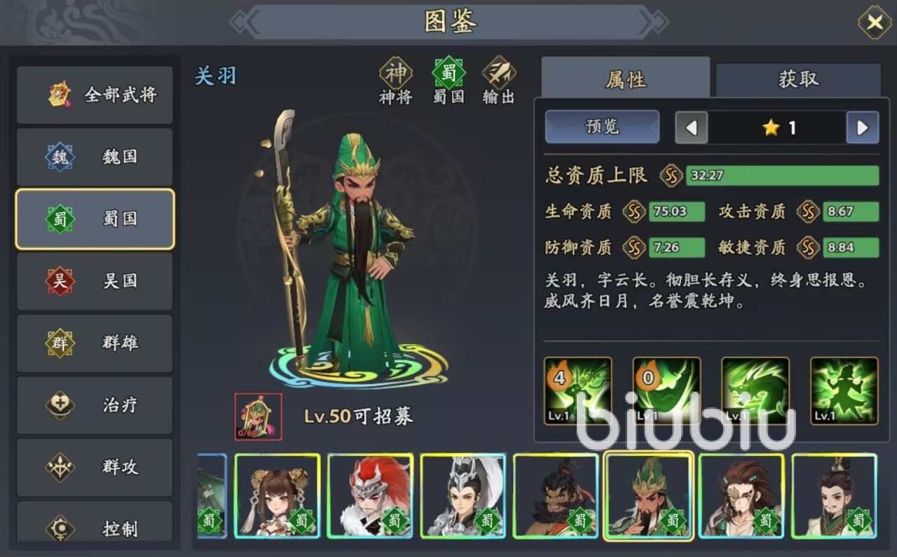 队友搭配方面选择的也都是以神将为主,首先是前排防御选择刘备,刘备的必杀技可以给自身和随机两个友方目标添加状态。在此状态下,受到攻击时所有人都会均摊伤害,免疫偷取效果,还能提高伤害减免。另外刘备能够对目标造成群体伤害和防御降低,提高其他人的输出。单体输出方面直接选择关于关羽,也是游戏里的热门角色,自身主动技能和必杀技都可以打出很可观的伤害,还有几率造成沉默等控制效果。