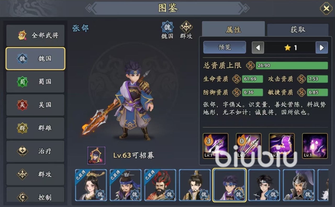 在阵容搭配方面,队友直接选择张春华,张郃,杨修和典韦。选择张春华和张郃的原因非常简单,因为这两个武将都有中毒效果。张春华自身的必杀技能够对三个随机目标造成伤害,并有几率添加中毒状态。张郃也是如此,张郃的必杀技伤害的目标是敌方横排全体,有几率造成中毒,只要有这三人的中毒技能使用出来,很快对方全体就会被全部覆盖。这样削弱了防御,其他输出也会提升。